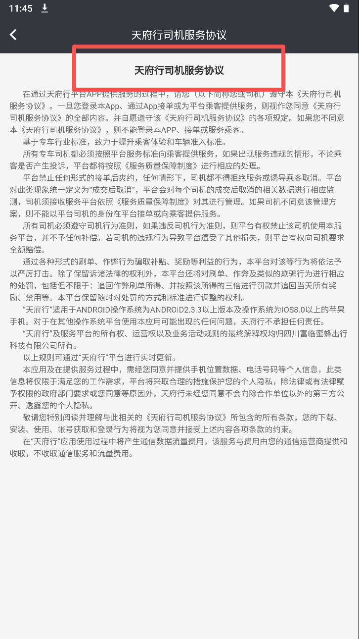 3、阅读《天府行司机服务协议》以了解服务条款和条件。