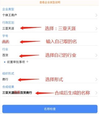 2、在界面当中选择好企业相关信息,点击名称检查