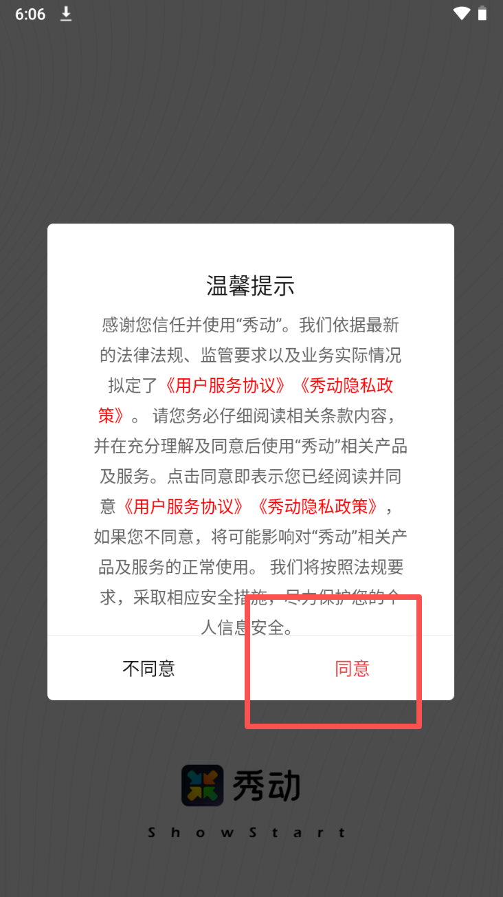 1、同意用户协议和隐私政策。点击“同意”按钮以接受协议并继续。