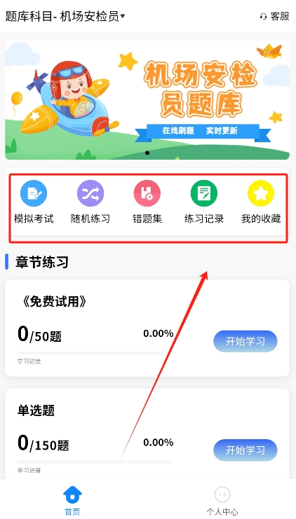 1、首先下载并安装安检员考试学知题,完成后开启应用,用户可轻松进入题库,选择适合的科目进行学习。