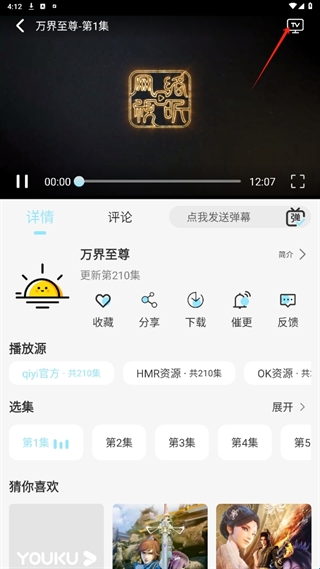 2、点击右上角的TV进行投屏。