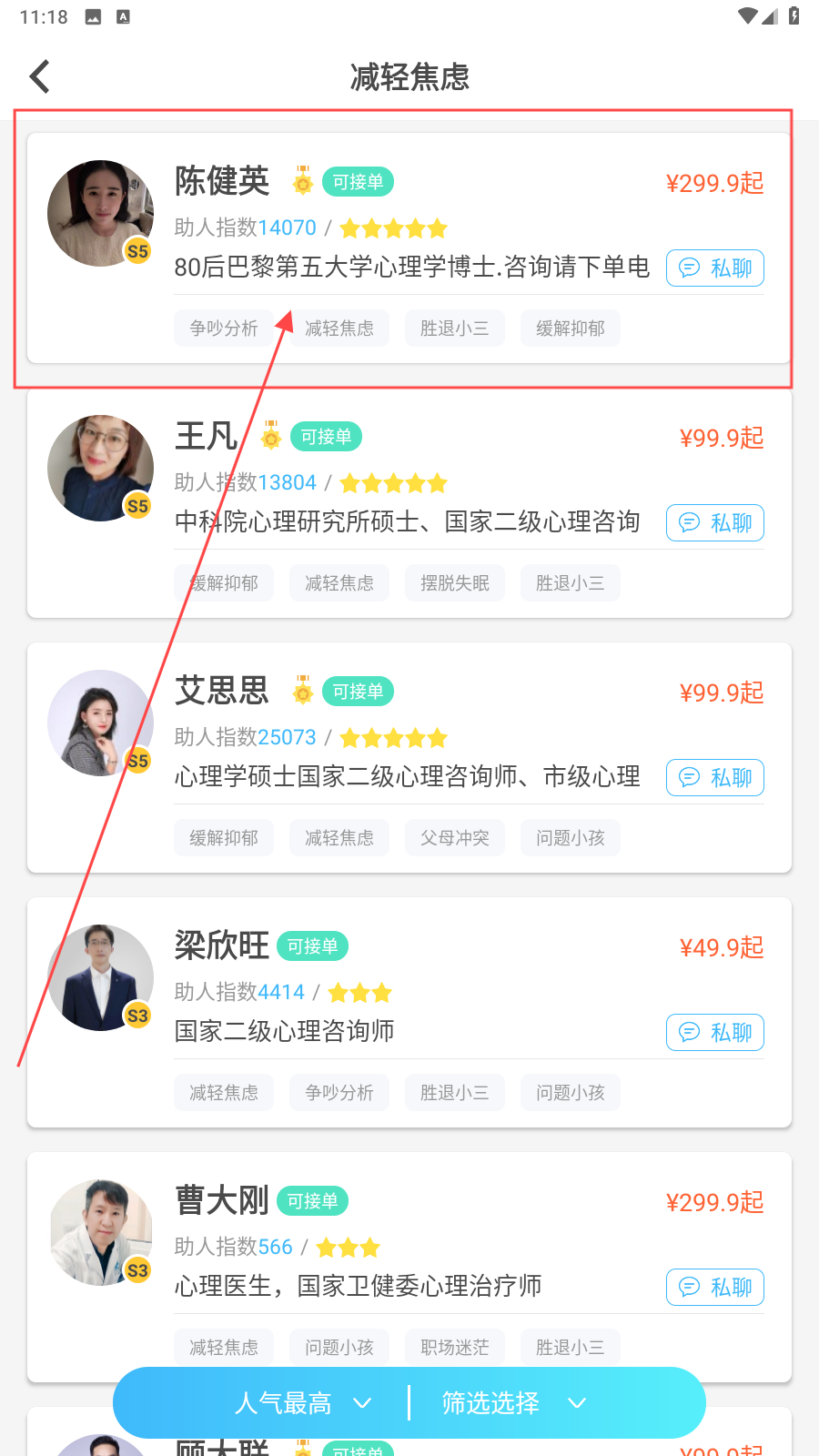 2、选择一名你想咨询的医生。