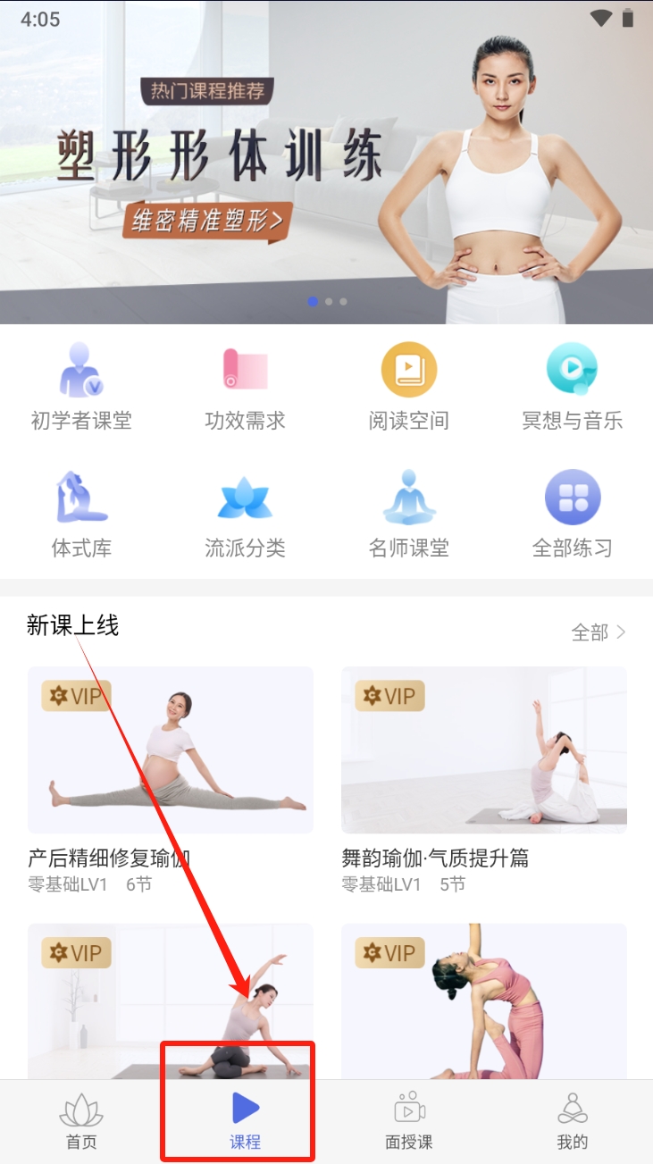 2、点击“课程”按钮,查看并选择适合您的塑形课程。