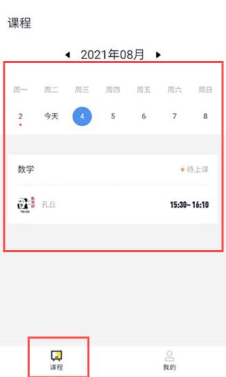2、在课程页面可以查看每天的课程安排。