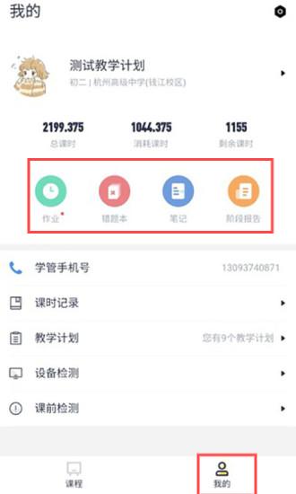 3、在我的页面可以查看作业、错题等。