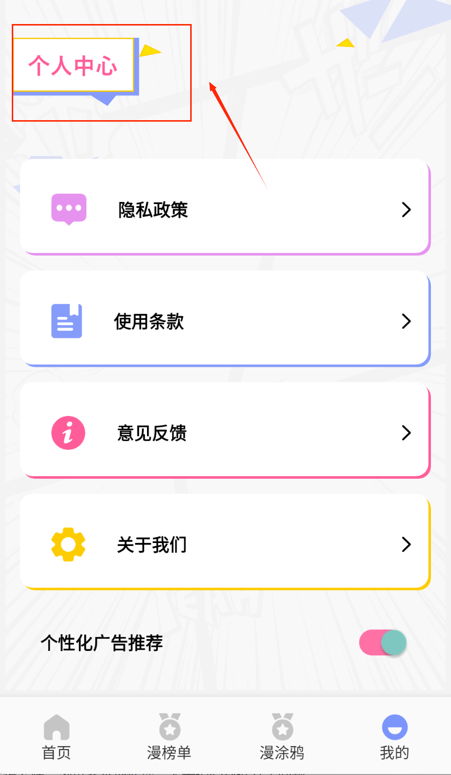 1、便捷使用:便携易用的手机应用,具有简洁清晰的用户界面,其外观简洁美观带给漫迷满足,便于用户学习和熟悉该软件。