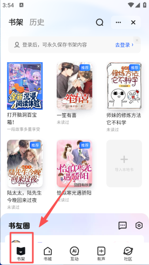 3、在书架页面,点击“书架”图标,查看已添加的小说。