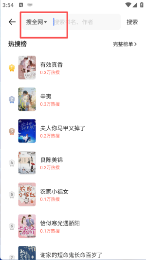 4、点击搜索栏,选择“搜全网”选项,搜索想要阅读的小说。