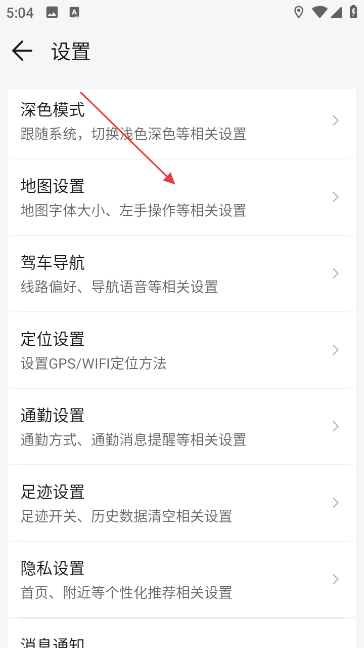 3、在设置页面,找到并点击【地图设置】选项,进入地图设置流程。