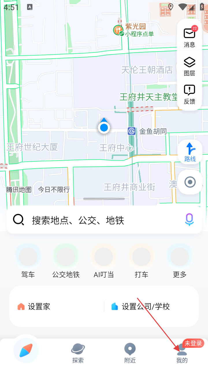 1、打开腾讯地图APP,进入主界面后,点击右下角【我的】按钮,进入个人相关页面。