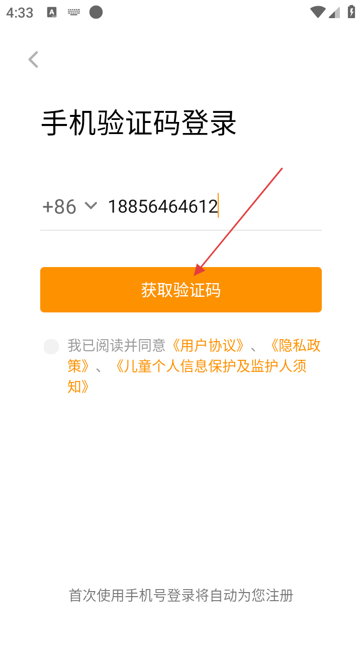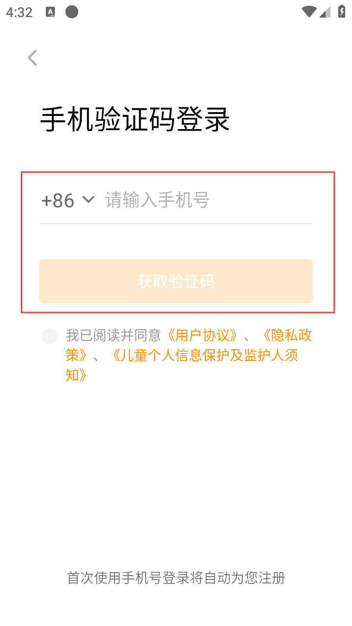 3、进入手机验证码登录页面,在输入框中输入手机号码,准备获取验证码。