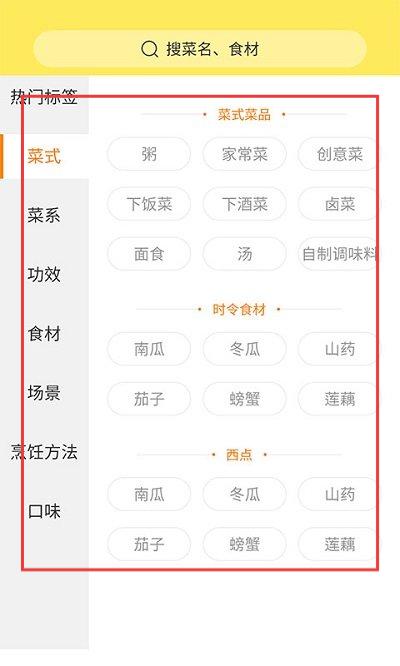 1、打开应用,在分类中点击想做的菜系大类。