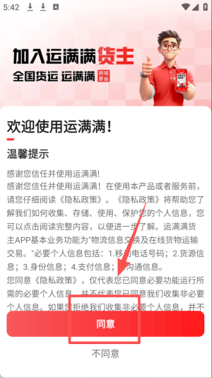 1、同意隐私政策:阅读并同意隐私政策,点击“同意”按钮继续注册流程。
