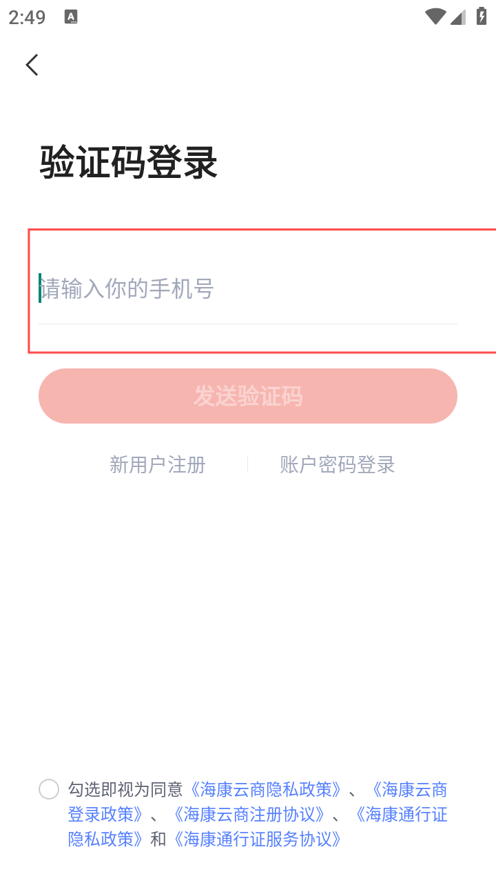 4、进入验证码登录界面,填写手机号,获取并输入验证码,完成登录后即可采购。