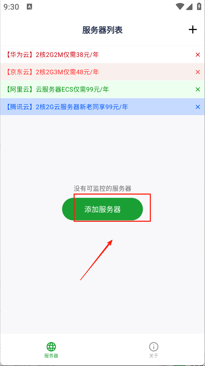 1、在服务器列表页面,点击“添加服务器”按钮,开始添加新服务器。