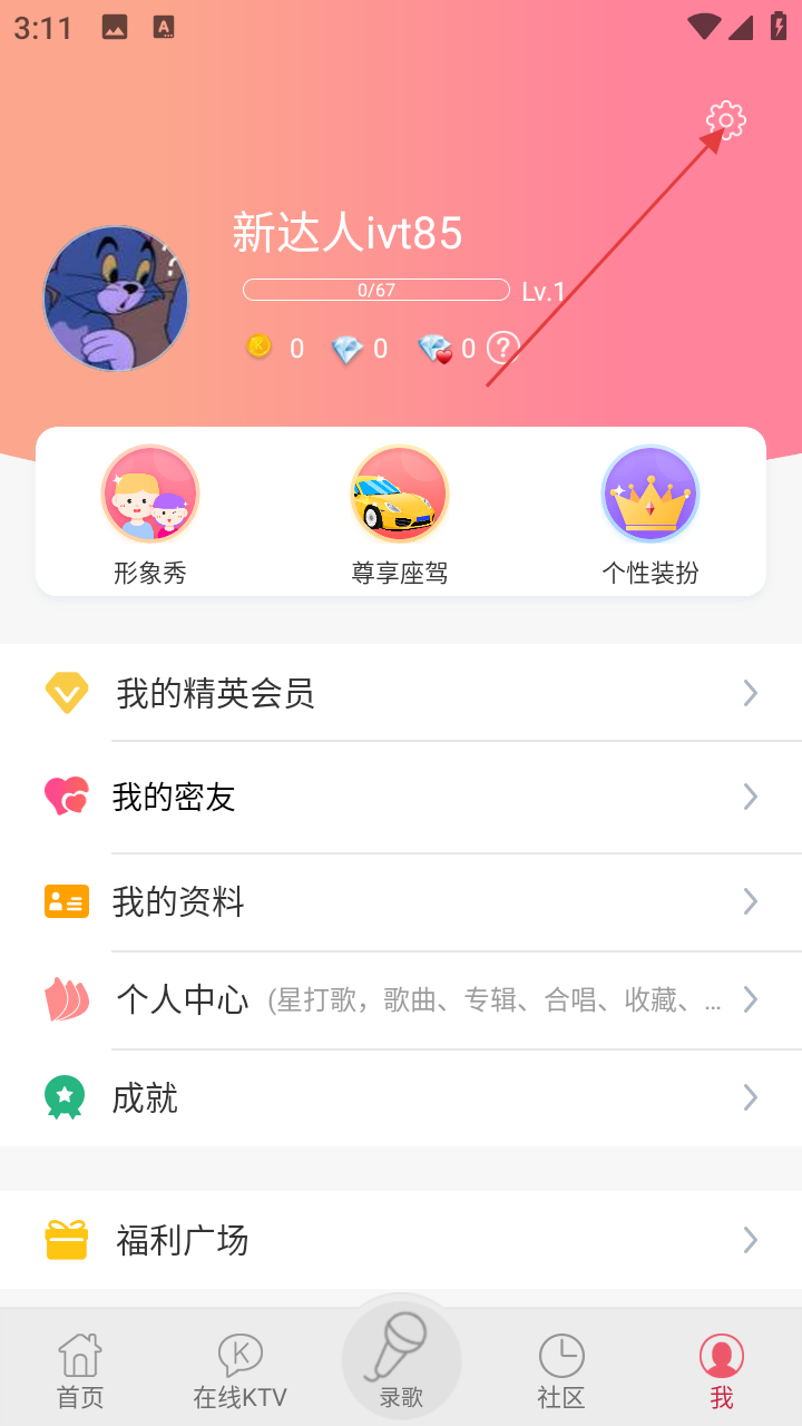 2、进入【我】的页面后,若要进入设置界面,点击右上角齿轮状的【设置】图标。
