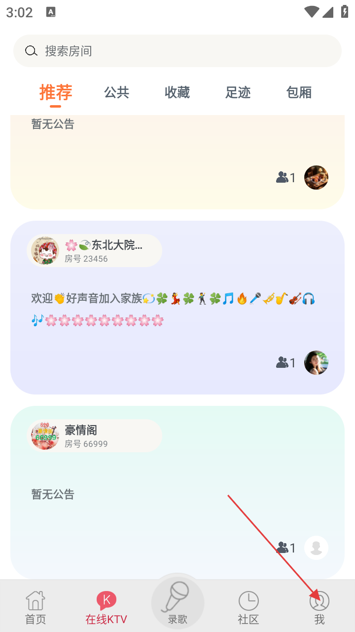 1、在k歌达人界面,若想进入个人相关页面,点击右下角【我】选项。