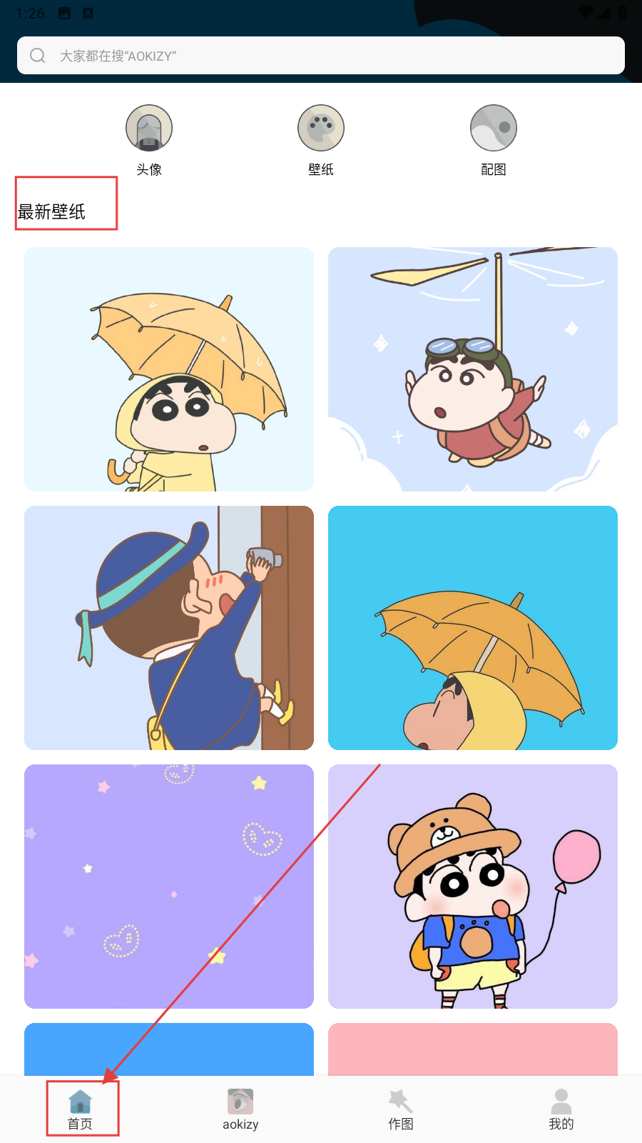 1、打开应用,在首页中有许多壁纸可以选择。