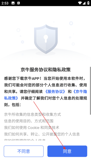 1、打开应用查看协议点击同意。