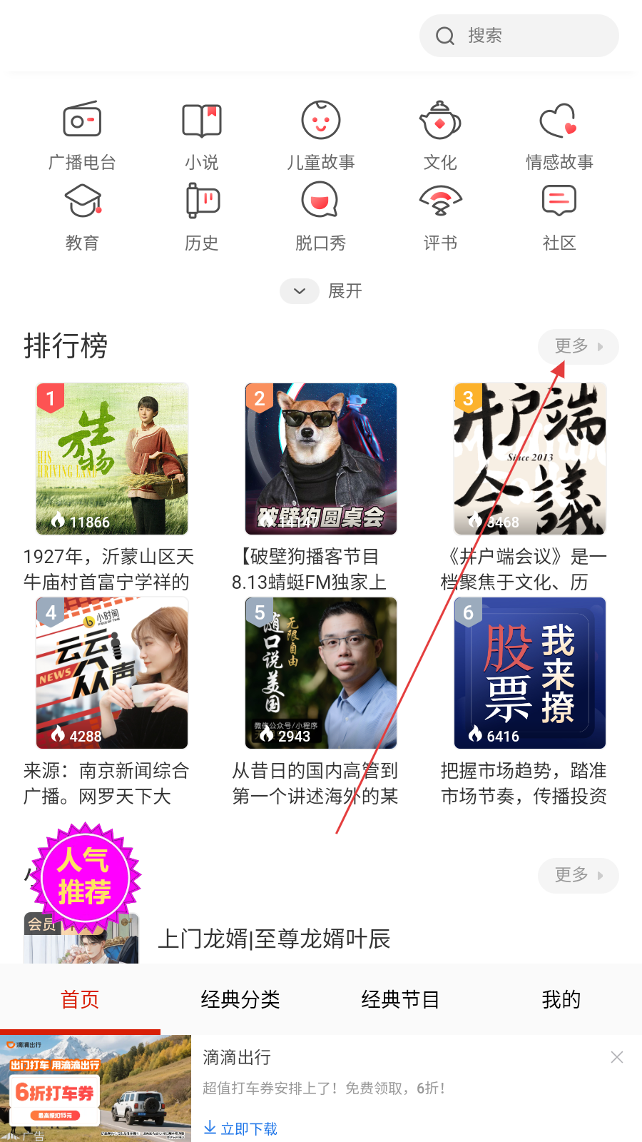 1、在首页,点击排行榜【更多】,进入完整排行界面。