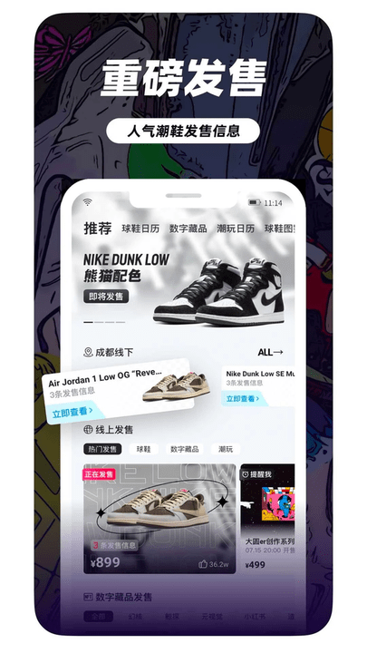 1、盯潮秒杀神器专注限量潮流商品抢购,覆盖全球50+热门品牌首发信息,包括Nike Dunk、Supreme Box Logo等稀缺单品,确保用户第一时间获取发售情报。