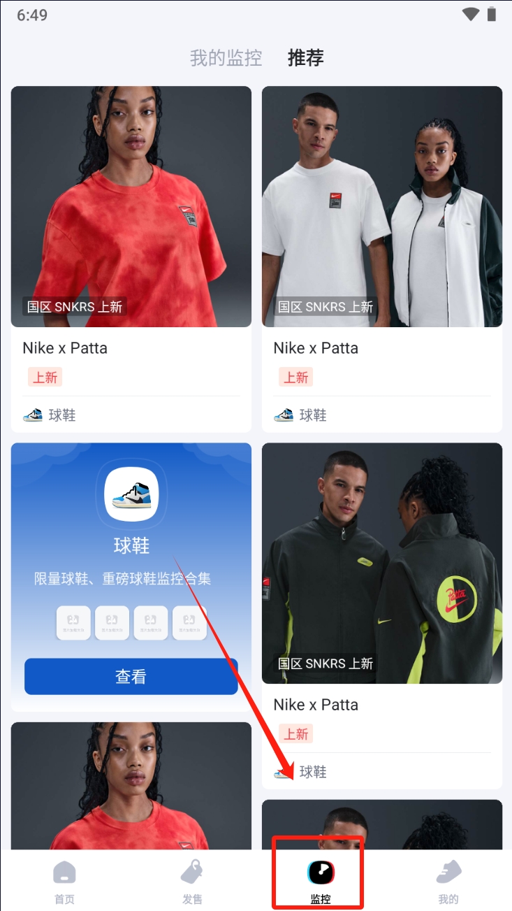3、在“监控”页面查看推荐商品,点击“查看”按钮获取更多信息。