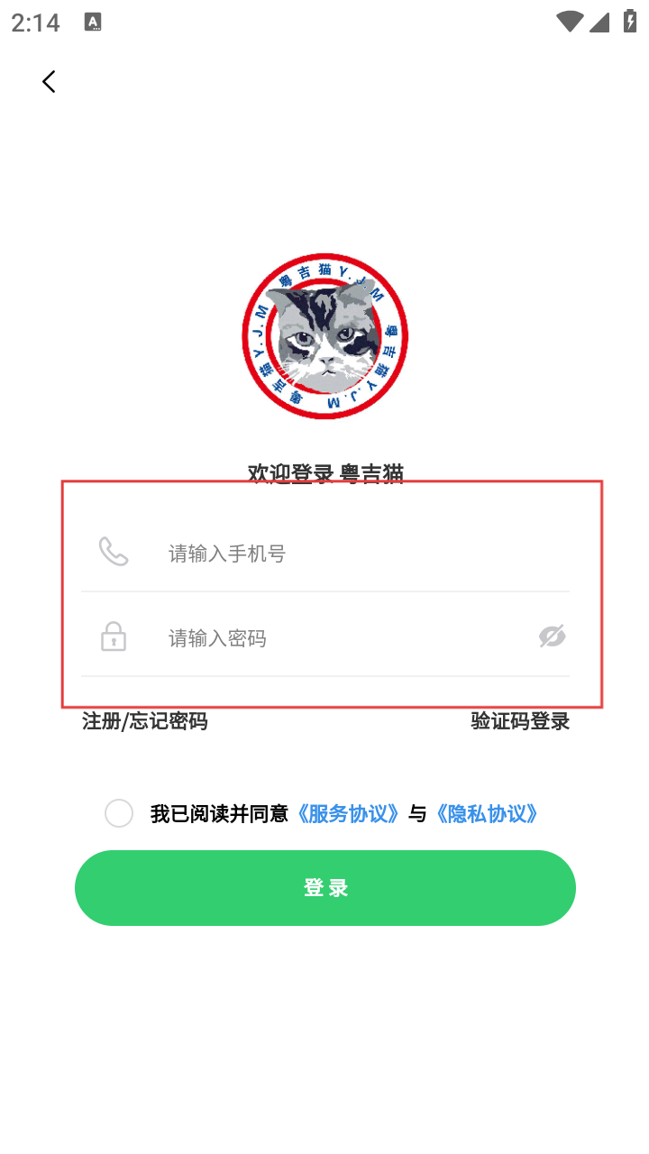 3、进入登录页面,可输入手机号和密码登录,勾选【我已阅读并同意《服务协议》与《隐私协议》】。