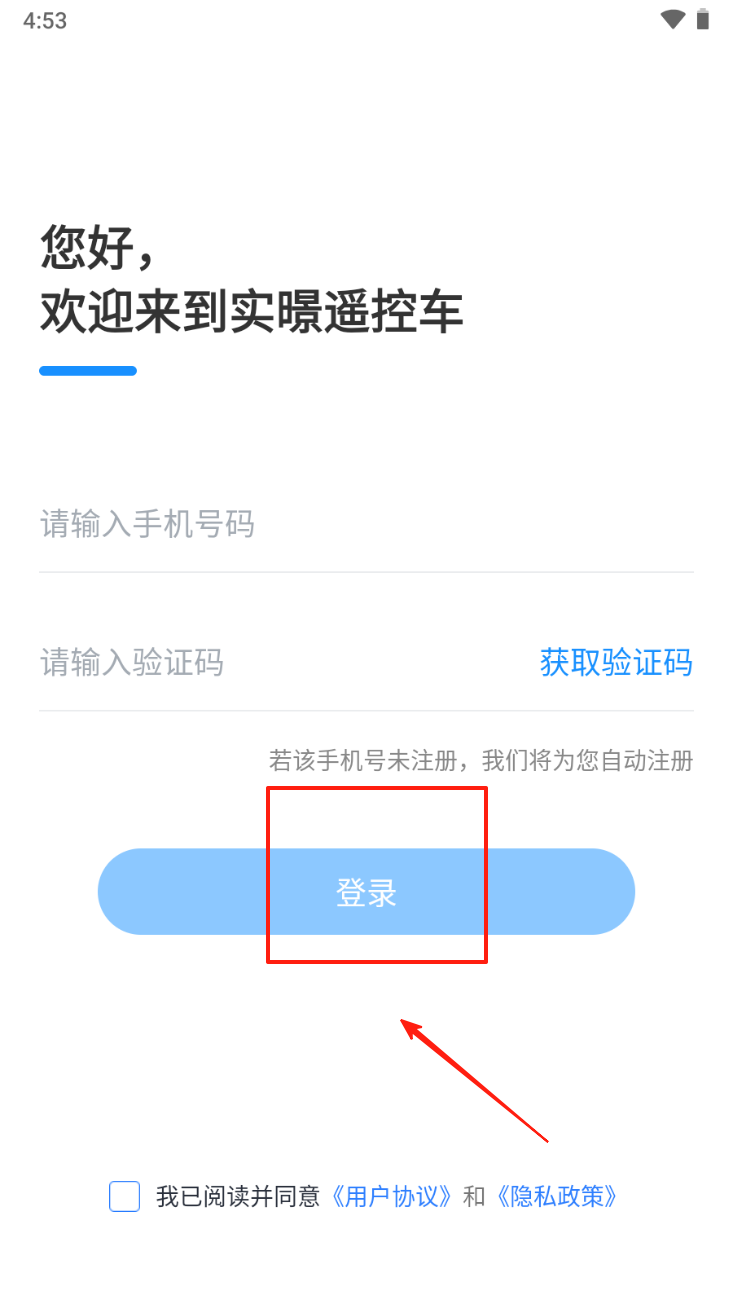 2、然后,输入手机号并获取验证码进行登录。若未注册,将自动注册。