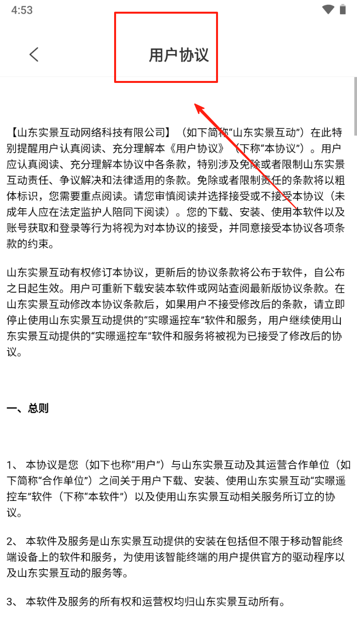 3、接着,阅读并同意《用户协议》,了解使用APP的前提条件。