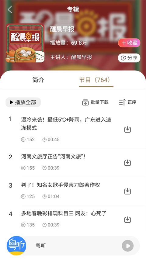 2. 支持在线收听和离线下载,随时随地享受粤语魅力。