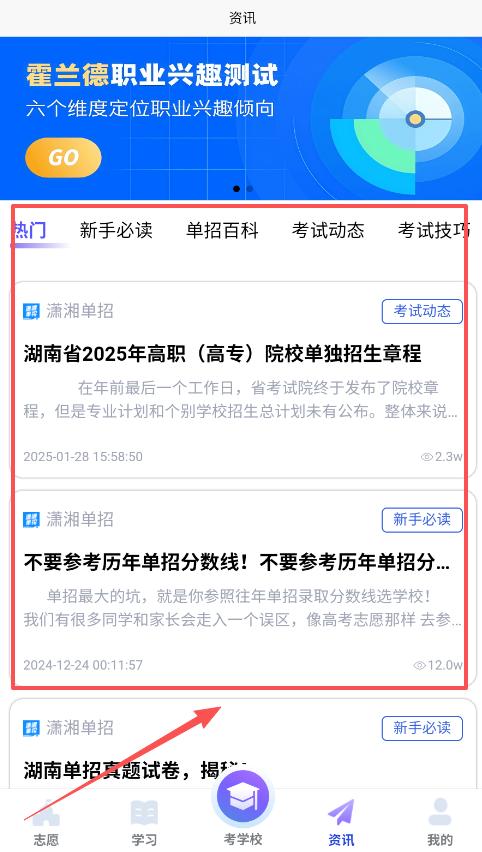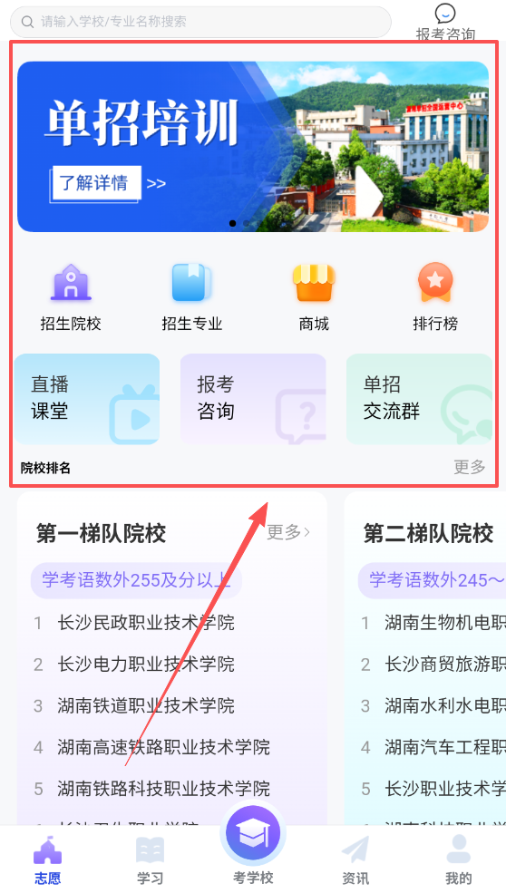 4、在遇到不理解的知识点时,利用查询功能了解各个学校及专业的信息,助力用户做出合理的报考决策。