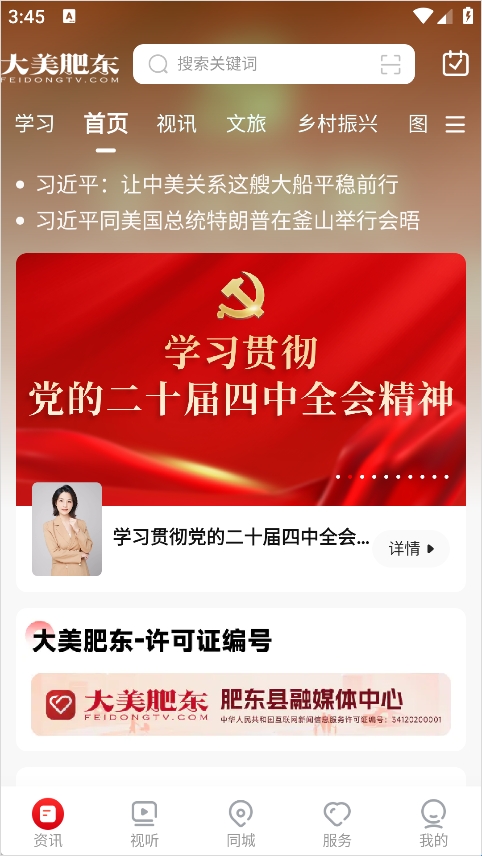 大美肥东是一款针对于肥东县打造的生活资讯服务软件,软件上包含着多种的生活服务功能,还具有对于当地的新闻资讯和对于文化视频的传播,向用户们展现最美的肥东,同时居民们享受到便捷的生活体验,不管是日常的出行天气还是找工作租房等都可以在软件上找到答案。