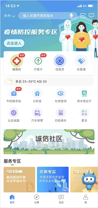 永在线是一款针对于永州市打造的智慧型政务服务的软件,在软件上用户们可以一键的进行办理事件,面对于生活上的一些困难都可以在软件上进行办理非常的方便,并且软件上还具有永州的新闻资讯用户们可以随时的进行观看,满足用户们的生活需求,提升居民的幸福感。