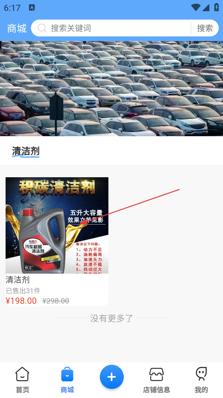 2、在商城页面,通过滑动或搜索找到“积碳清洁剂”商品,点击商品卡片进入详情页,查看价格、销量、使用说明等内容。