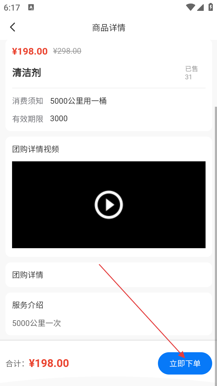 3、进入商品详情页,确认商品信息无误后,点击页面右下角蓝色的【立即下单】按钮,系统会跳转至确认订单界面,准备进行支付环节。
