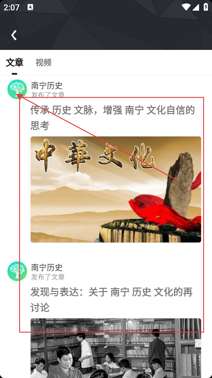 4、关注后,查看南宁历史发布的文章,浏览历史文化内容。