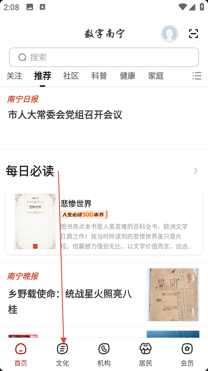 1、打开数字南宁,点底部【文化】,进入文化板块。