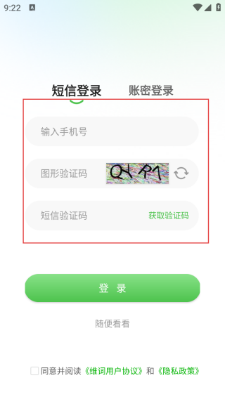3、进入登录注册界面输入手机号和验证码即可完成一键注册。