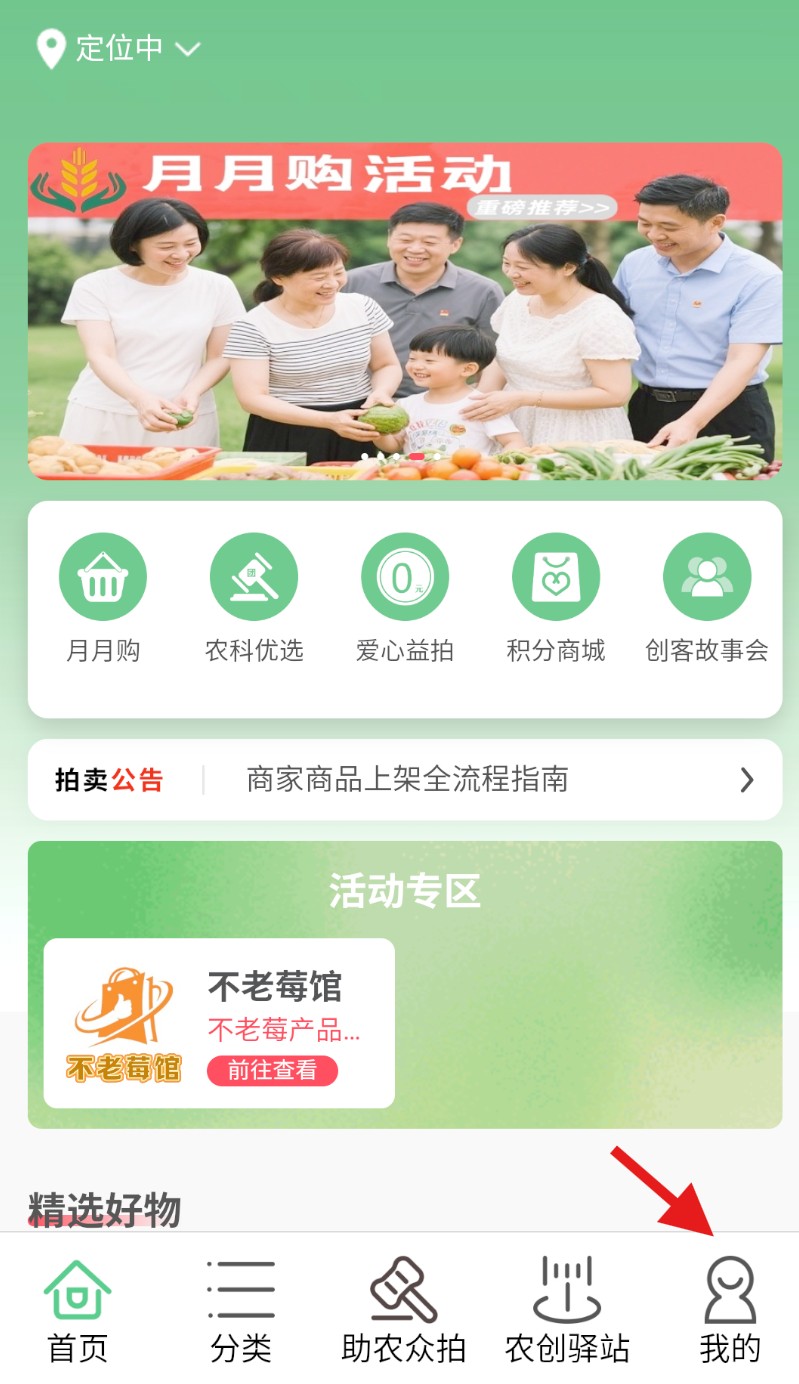 1.启动宙农拍卖应用程序,于底部导航栏里选取“我的”按钮并轻触,以此进入个人功能专属界面。