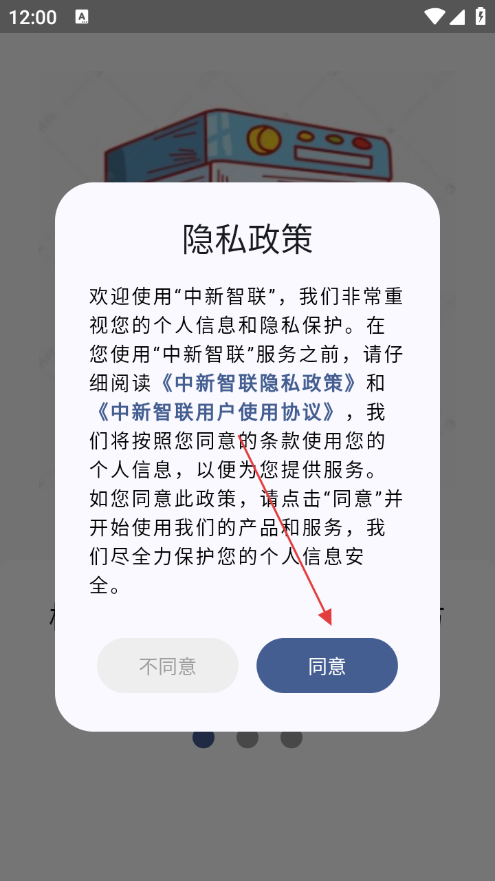 1、打开应用查看【隐私政策】点击【同意】,接受服务条款。