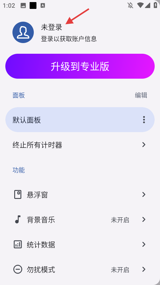 3、在功能列表中点击【未登录】,弹出登录选项。