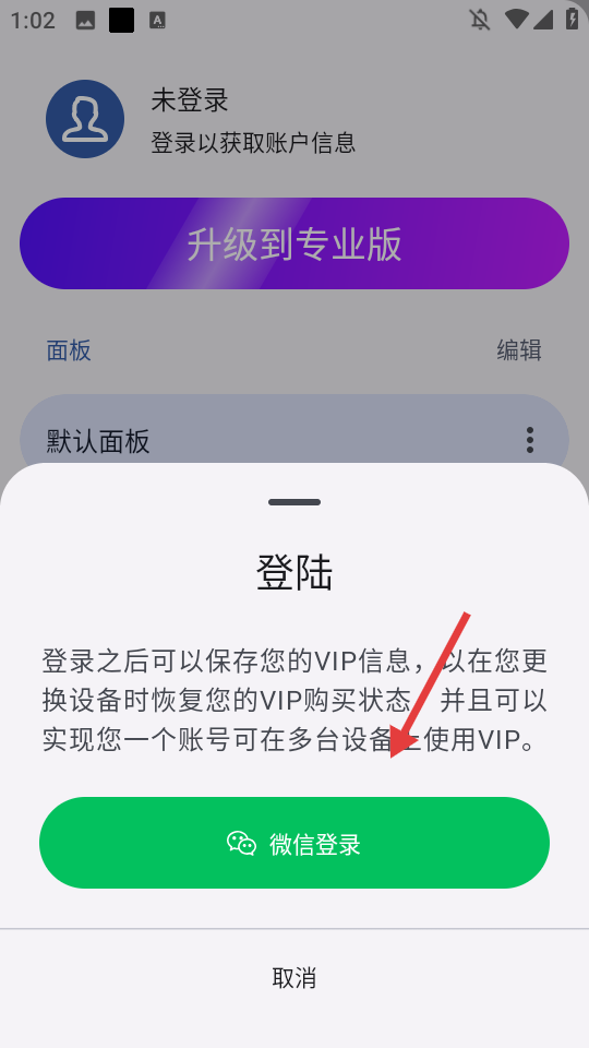 4、在登录选项中点击【微信登录】,完成账号登录操作。