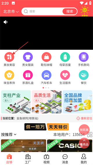 1、点击首页的美妆美容,进入美妆美容分类页面。