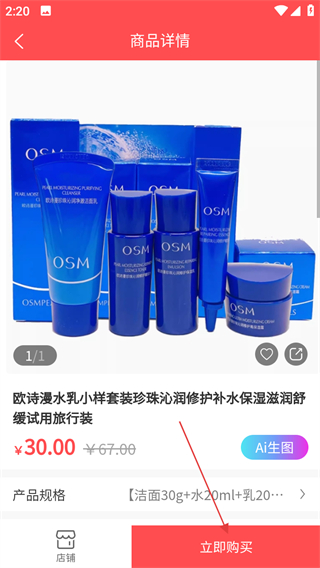 3、在店铺页面,选择欧诗漫水乳小样套装珍珠沁润修护商品。