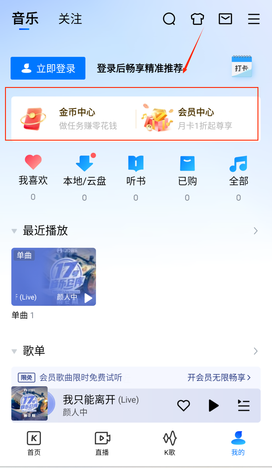 3、会员有很多特权,比如解锁全曲库、去除广告等,在黄色横幅“开通会员畅享全曲库”处可以开通,新用户通常有优惠体验呢。
