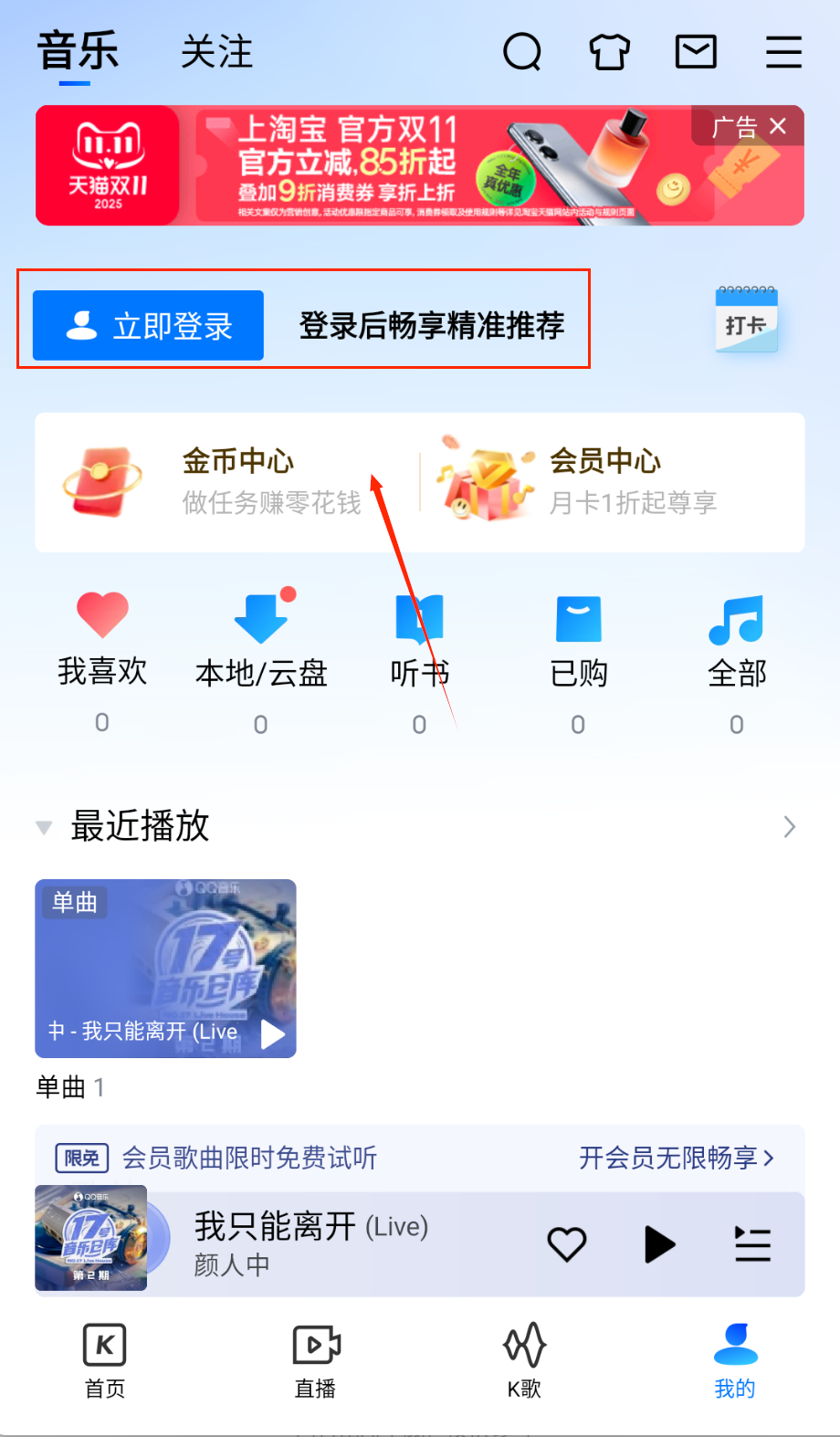 1、打开软件后可以先完成账号登录,点击首页顶部的“立即登录”按钮,登录后就能享受个性化推荐,还能在金币中心做任务赚取零花钱呢。
