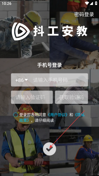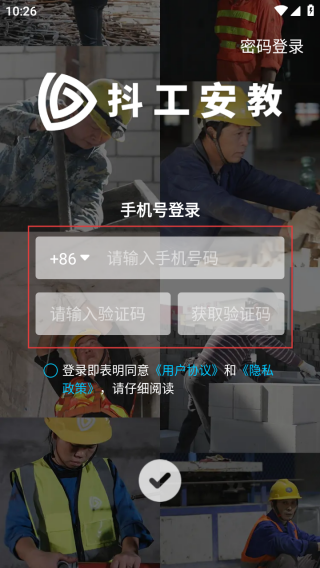 2、进入登录界面输入手机号和验证码。