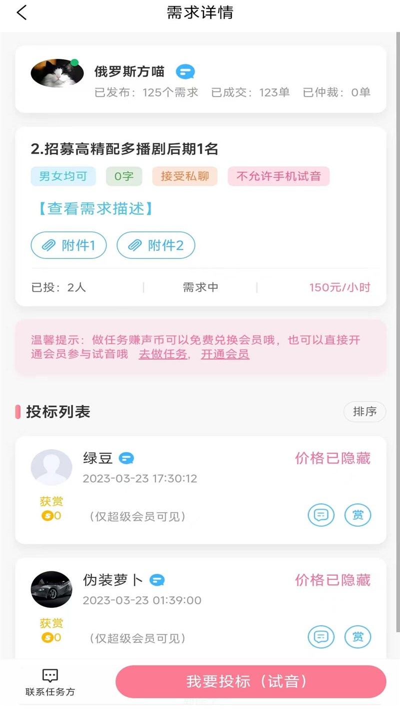 3.声赚为用户提供了海量的配音任务,让你有机会展示自己的声音和才华。
