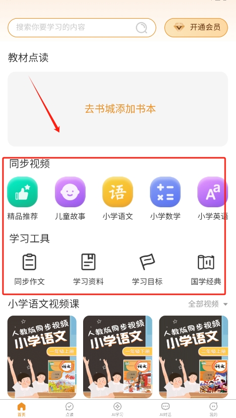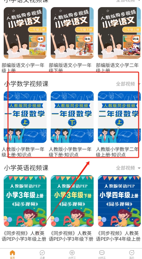 1、首先,在搜索并下载课本通小学英语点读机,安装完成后打开应用,进入主界面即可看到各学科的学习资源,方便选择使用。