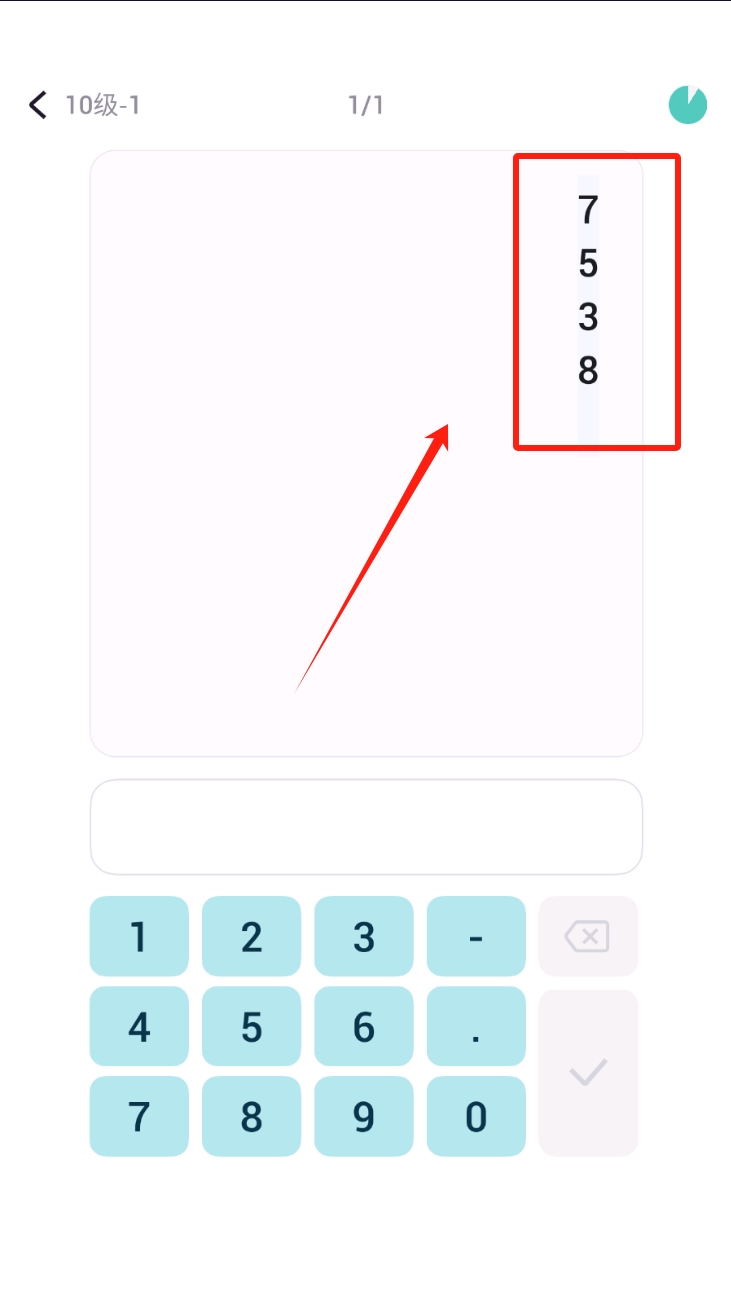 2、选择关卡并点击“1”开始当前等级的计算挑战。